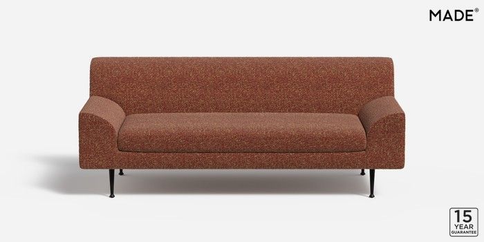 6.12.1 Judd by Made 3 Seater Small Sofa Tonal Boucle Maroon Red and Light Caramel Tapered - Black Metal | Made Click here to use our website with more accessibility support, for example screen readers