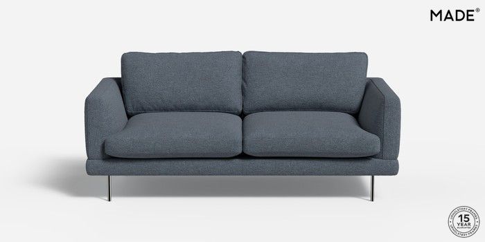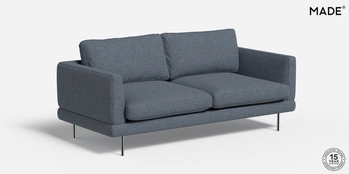 6.12.1 Lugani by Made 3 Seater Small Sofa Boucle Textured Weave Slate Blue Skinny - Chrome | Made Click here to use our website with more accessibility support, for example screen readers