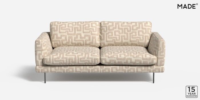 6.12.1 Lugani by Made 3 Seater Small Sofa Clyde Abstract Light Oatmeal Natural Skinny - Chrome | Made Click here to use our website with more accessibility support, for example screen readers