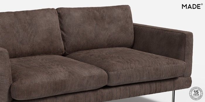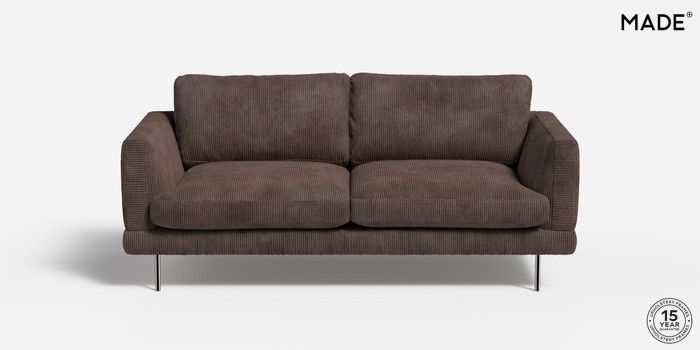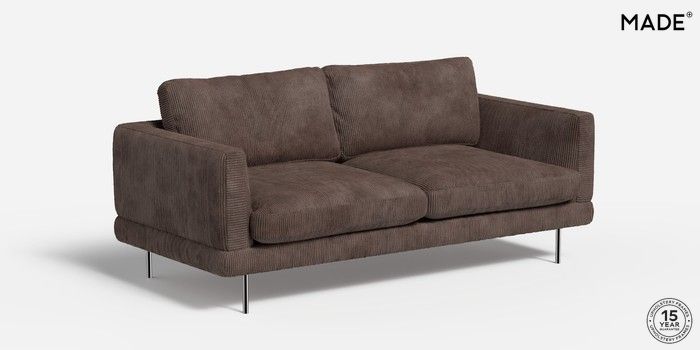 6.12.1 Lugani by Made 3 Seater Small Sofa Matt Corduroy Chocolate Brown Skinny - Chrome | Made Click here to use our website with more accessibility support, for example screen readers