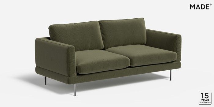 6.12.1 Lugani by Made 3 Seater Small Sofa Matt Corduroy Fennel Green Skinny - Chrome | Made Click here to use our website with more accessibility support, for example screen readers