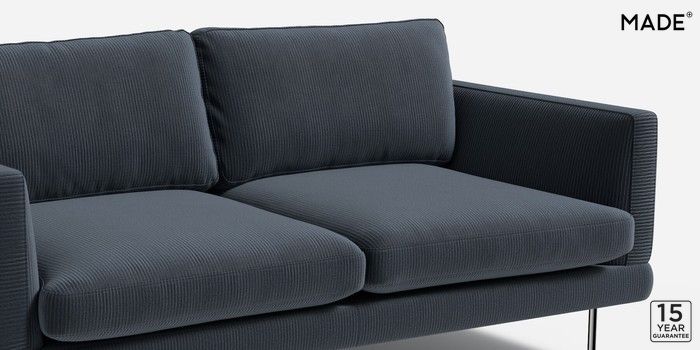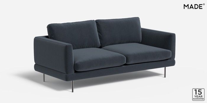 6.12.1 Lugani by Made 3 Seater Small Sofa Matt Corduroy Midnight Blue Skinny - Chrome | Made Click here to use our website with more accessibility support, for example screen readers