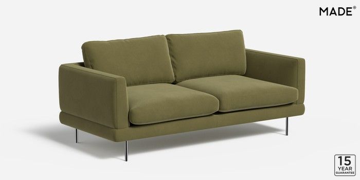 6.12.1 Lugani by Made 3 Seater Small Sofa Matt Velvet Easy Clean Fern Green Skinny - Chrome | Made Click here to use our website with more accessibility support, for example screen readers