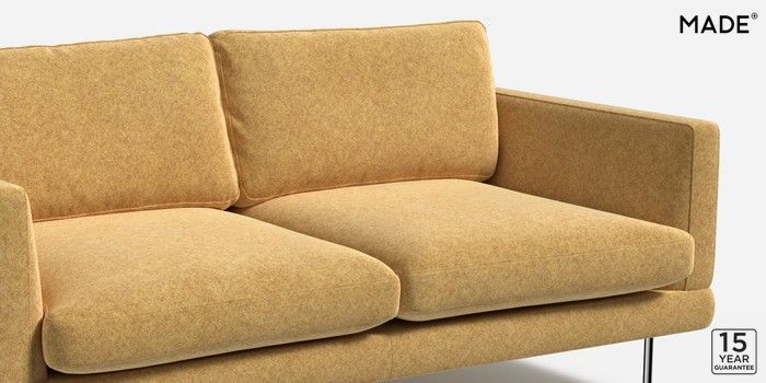 6.12.1 Lugani by Made 3 Seater Small Sofa Soft Chenille Easy Clean Yellow Ochre Skinny - Chrome | Made Click here to use our website with more accessibility support, for example screen readers