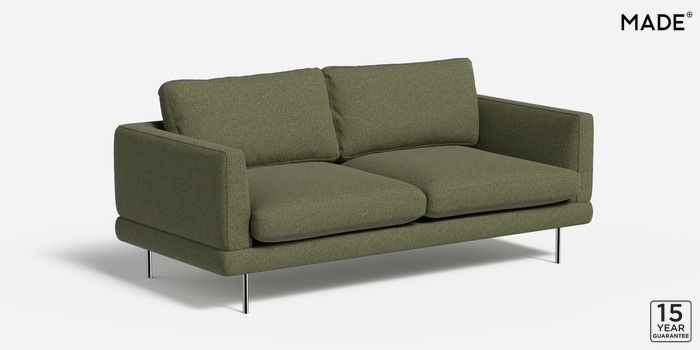 6.12.1 Lugani by Made 3 Seater Small Sofa Textured Woven Meadow Green Skinny - Chrome | Made Click here to use our website with more accessibility support, for example screen readers