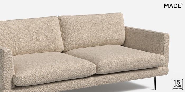 6.12.1 Lugani by Made 3 Seater Sofa Basket Weave Natural Stone Skinny - Chrome | Made Click here to use our website with more accessibility support, for example screen readers