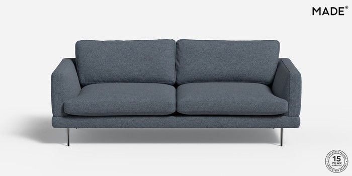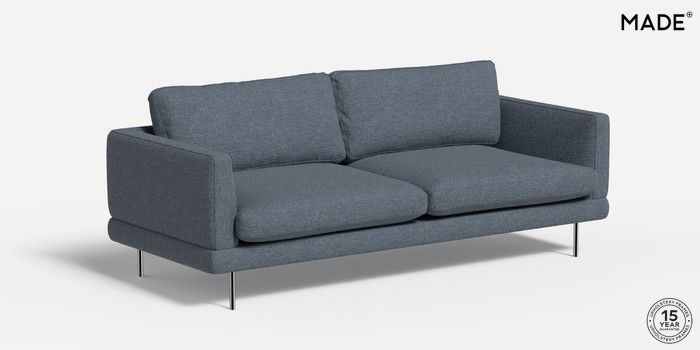 6.12.1 Lugani by Made 3 Seater Sofa Boucle Textured Weave Slate Blue Skinny - Chrome | Made Click here to use our website with more accessibility support, for example screen readers