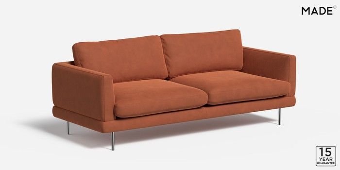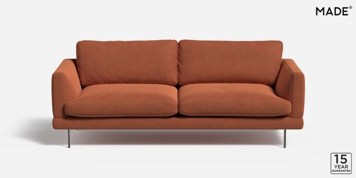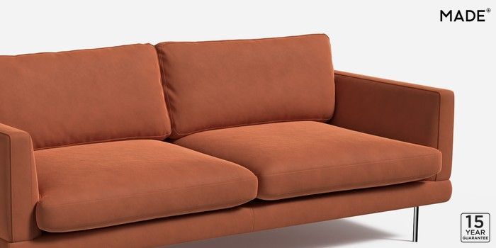 6.12.1 Lugani by Made 3 Seater Sofa Matt Velvet Easy Clean Burnt Orange Skinny - Chrome | Made Click here to use our website with more accessibility support, for example screen readers