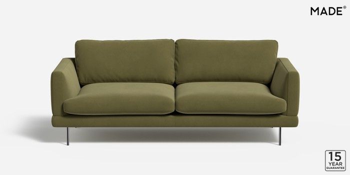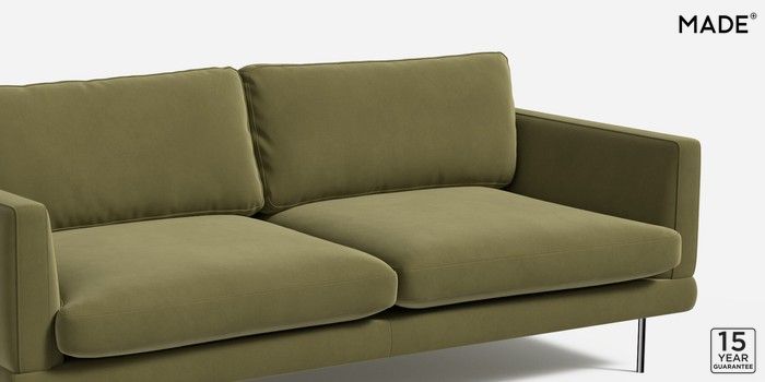 6.12.1 Lugani by Made 3 Seater Sofa Matt Velvet Easy Clean Fern Green Skinny - Chrome | Made Click here to use our website with more accessibility support, for example screen readers