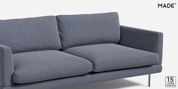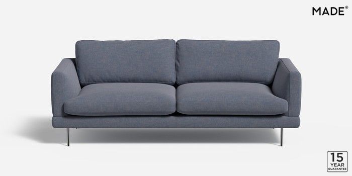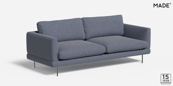 6.12.1 Lugani by Made 3 Seater Sofa Soft Chenille Easy Clean Denim Blue Skinny - Chrome | Made Click here to use our website with more accessibility support, for example screen readers