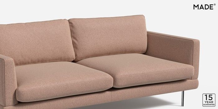 6.12.1 Lugani by Made 3 Seater Sofa Textured Woven Plaster Pink Skinny - Chrome | Made Click here to use our website with more accessibility support, for example screen readers