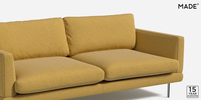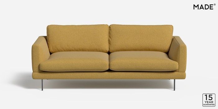 6.12.1 Lugani by Made 3 Seater Sofa Textured Woven Warm Ochre Skinny - Chrome | Made Click here to use our website with more accessibility support, for example screen readers