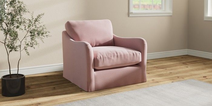 7.2.10 Madeline Deep Relaxed Sit Loose Cover Armchair Natural Mix Light Rose Pink Low Turned - Light | Made Click here to use our website with more accessibility support, for example screen readers