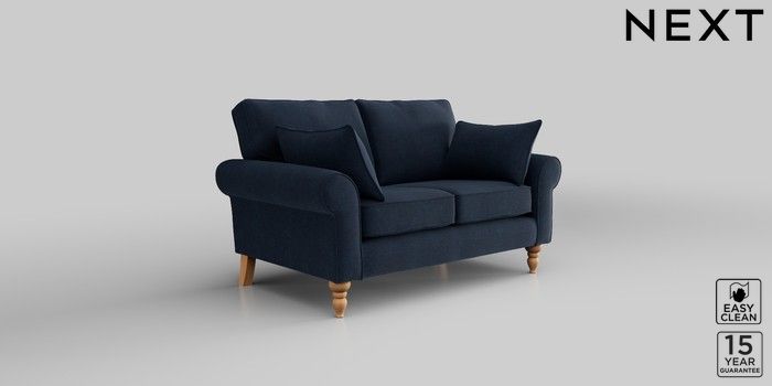 7.2.10 Mallory 2 Seater Small Sofa Fine Chenille Easy Clean Dark Navy Blue High Turned - Light | Made Click here to use our website with more accessibility support, for example screen readers