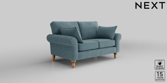7.2.10 Mallory 2 Seater Small Sofa Fine Chenille Easy Clean Mid Blue High Turned - Light | Made Click here to use our website with more accessibility support, for example screen readers