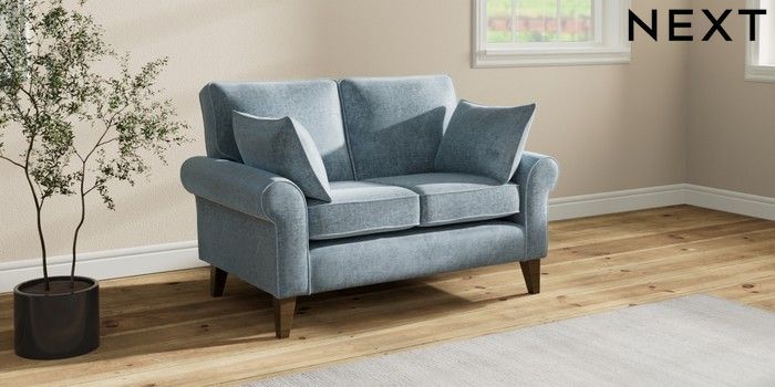 7.2.10 Mallory 2 Seater Small Sofa Plush Chenille Light Blue High Tapered - Mid | Made Click here to use our website with more accessibility support, for example screen readers