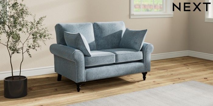 7.2.10 Mallory 2 Seater Small Sofa Plush Chenille Light Blue High Turned - Dark | Made Click here to use our website with more accessibility support, for example screen readers