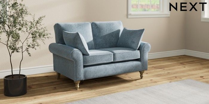 7.2.10 Mallory 2 Seater Small Sofa Plush Chenille Light Blue High Turned - Light | Made Click here to use our website with more accessibility support, for example screen readers