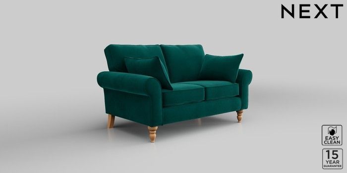 7.2.10 Mallory 2 Seater Small Sofa Plush Velvet Easy Clean Juniper Green High Turned - Light | Made Click here to use our website with more accessibility support, for example screen readers