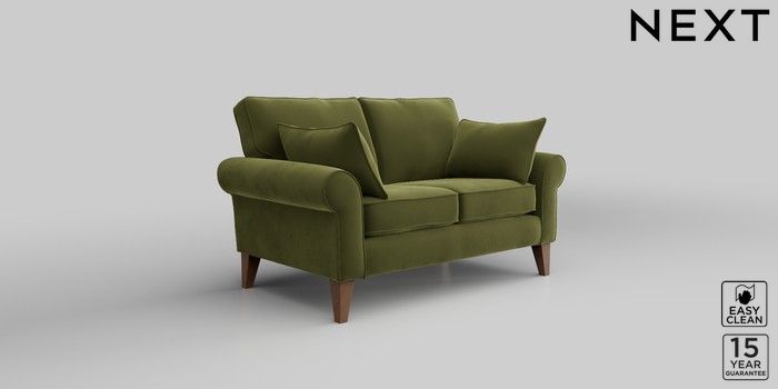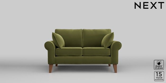 7.2.10 Mallory 2 Seater Small Sofa Plush Velvet Easy Clean Mid Olive Green High Tapered - Mid | Made Click here to use our website with more accessibility support, for example screen readers