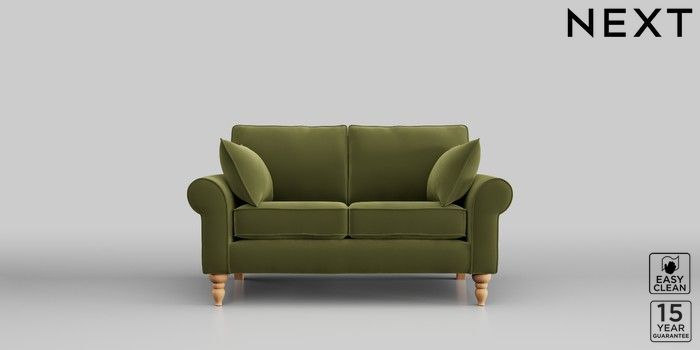 7.2.10 Mallory 2 Seater Small Sofa Plush Velvet Easy Clean Mid Olive Green High Turned - Light | Made Click here to use our website with more accessibility support, for example screen readers