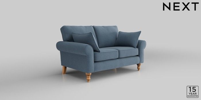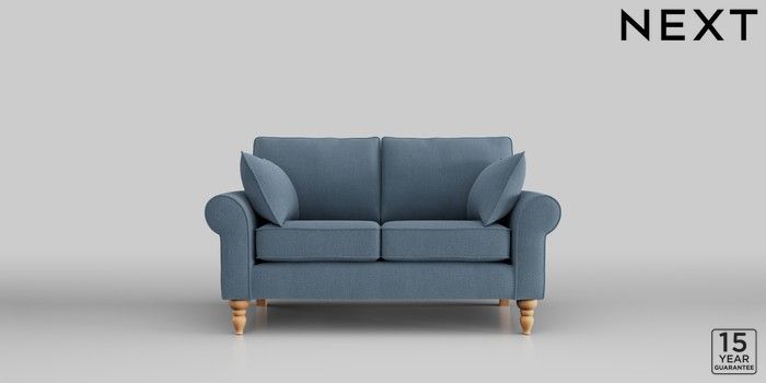 7.2.10 Mallory 2 Seater Small Sofa Relaxed Linen Look Mid Blue High Turned - Light | Made Click here to use our website with more accessibility support, for example screen readers