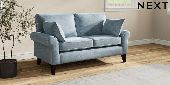 7.2.10 Mallory 2 Seater Sofa Plush Chenille Light Blue High Tapered - Dark | Made Click here to use our website with more accessibility support, for example screen readers