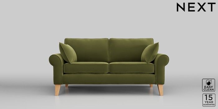 7.2.10 Mallory 2 Seater Sofa Plush Velvet Easy Clean Mid Olive Green High Tapered - Light | Made Click here to use our website with more accessibility support, for example screen readers