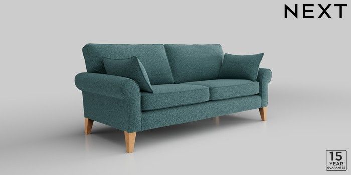 7.2.10 Mallory 3 Seater Small Sofa Chunky Chenille Mid Teal Green High Tapered - Light | Made Click here to use our website with more accessibility support, for example screen readers