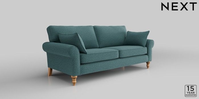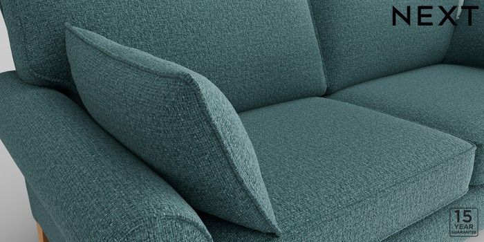 7.2.10 Mallory 3 Seater Small Sofa Chunky Chenille Mid Teal Green High Turned - Light | Made Click here to use our website with more accessibility support, for example screen readers