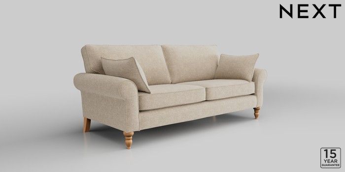 7.2.10 Mallory 3 Seater Small Sofa Chunky Weave Cream High Turned - Light | Made Click here to use our website with more accessibility support, for example screen readers
