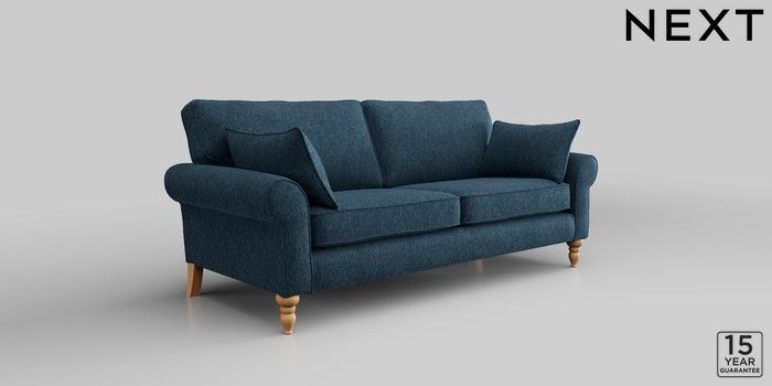 7.2.10 Mallory 3 Seater Small Sofa Cotswold Chenille Dark Blue High Turned - Light | Made Click here to use our website with more accessibility support, for example screen readers