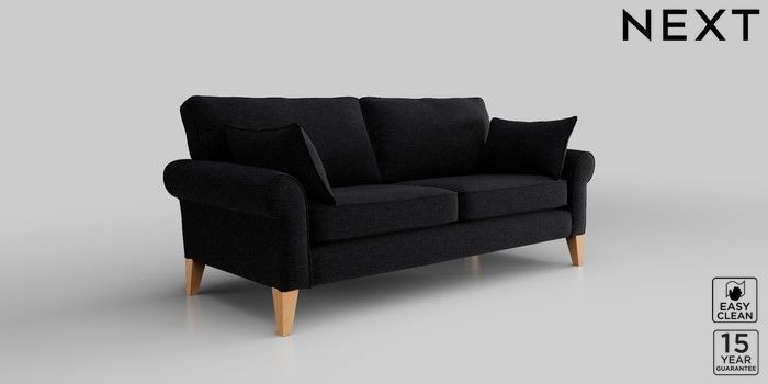7.2.10 Mallory 3 Seater Small Sofa Fine Chenille Easy Clean Black High Tapered - Light | Made Click here to use our website with more accessibility support, for example screen readers