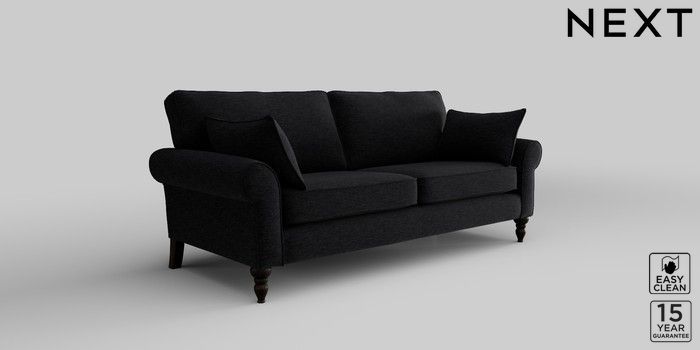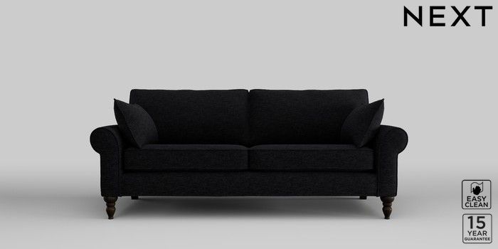 7.2.10 Mallory 3 Seater Small Sofa Fine Chenille Easy Clean Black High Turned - Dark | Made Click here to use our website with more accessibility support, for example screen readers