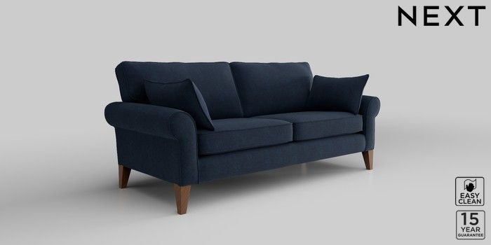 7.2.10 Mallory 3 Seater Small Sofa Fine Chenille Easy Clean Dark Navy Blue High Tapered - Mid | Made Click here to use our website with more accessibility support, for example screen readers