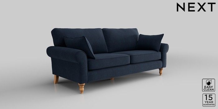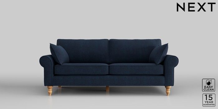 7.2.10 Mallory 3 Seater Small Sofa Fine Chenille Easy Clean Dark Navy Blue High Turned - Light | Made Click here to use our website with more accessibility support, for example screen readers