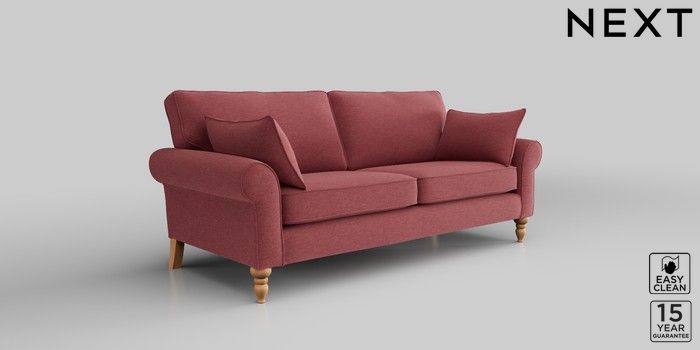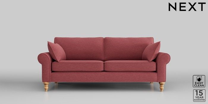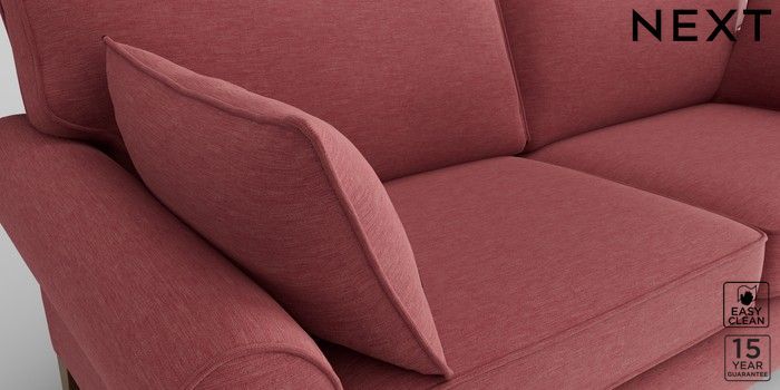 7.2.10 Mallory 3 Seater Small Sofa Fine Chenille Easy Clean Mid Pink High Turned - Light | Made Click here to use our website with more accessibility support, for example screen readers
