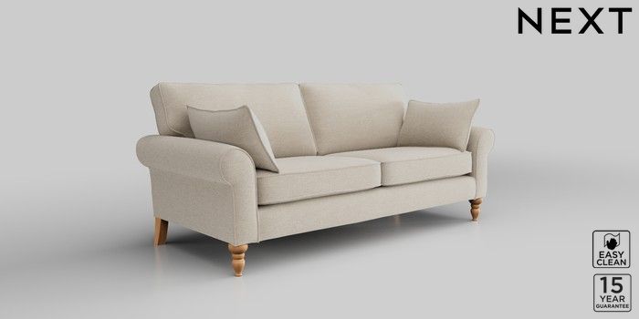 7.2.10 Mallory 3 Seater Small Sofa Fine Chenille Easy Clean Oyster High Turned - Light | Made Click here to use our website with more accessibility support, for example screen readers
