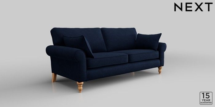 7.2.10 Mallory 3 Seater Small Sofa Luxe Chenille Navy Blue High Turned - Light | Made Click here to use our website with more accessibility support, for example screen readers