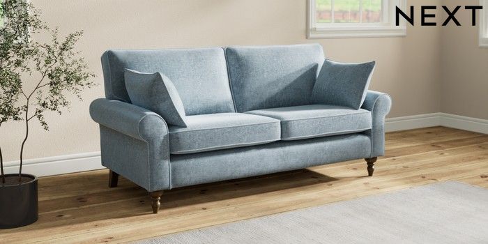 7.2.10 Mallory 3 Seater Small Sofa Plush Chenille Light Blue High Turned - Mid | Made Click here to use our website with more accessibility support, for example screen readers