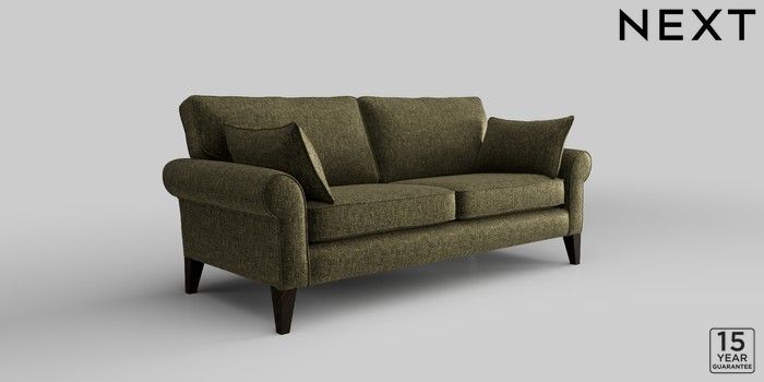 7.2.10 Mallory 3 Seater Small Sofa Plush Chenille Moss Green High Tapered - Dark | Made Click here to use our website with more accessibility support, for example screen readers