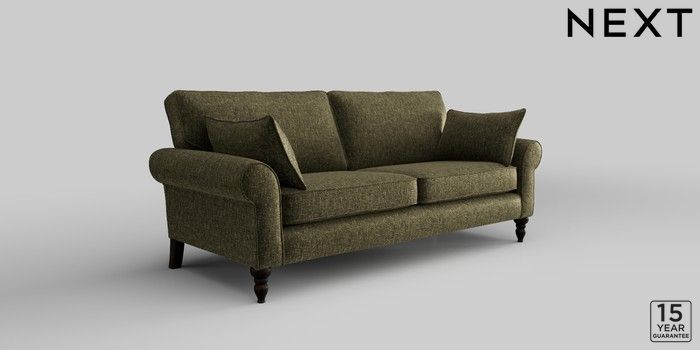7.2.10 Mallory 3 Seater Small Sofa Plush Chenille Moss Green High Turned - Dark | Made Click here to use our website with more accessibility support, for example screen readers
