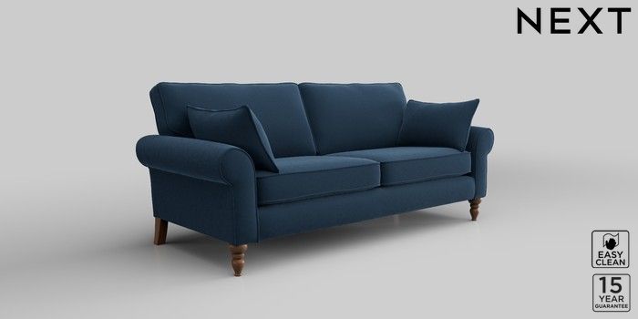 7.2.10 Mallory 3 Seater Small Sofa Plush Velvet Easy Clean Airforce Blue High Turned - Mid | Made Click here to use our website with more accessibility support, for example screen readers