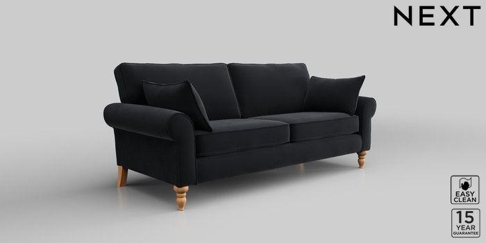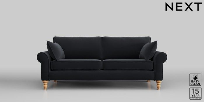7.2.10 Mallory 3 Seater Small Sofa Plush Velvet Easy Clean Charcoal Grey High Turned - Light | Made Click here to use our website with more accessibility support, for example screen readers
