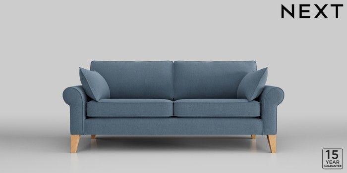 7.2.10 Mallory 3 Seater Small Sofa Relaxed Linen Look Mid Blue High Tapered - Light | Made Click here to use our website with more accessibility support, for example screen readers