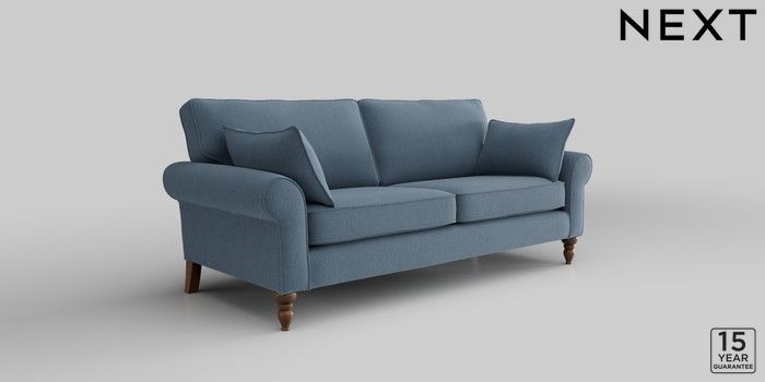7.2.10 Mallory 3 Seater Small Sofa Relaxed Linen Look Mid Blue High Turned - Mid | Made Click here to use our website with more accessibility support, for example screen readers