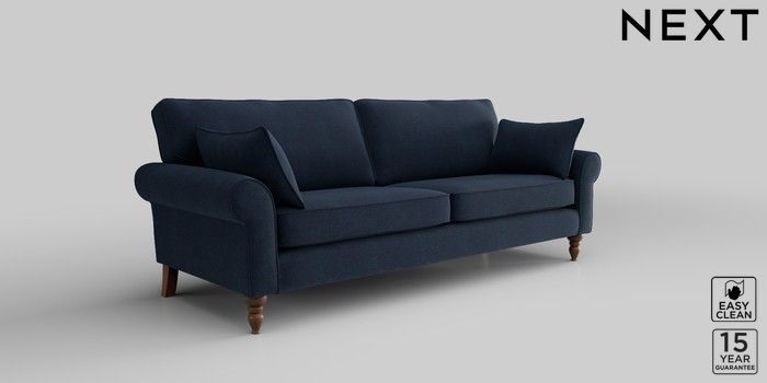 7.2.10 Mallory 3 Seater Sofa Fine Chenille Easy Clean Dark Navy Blue High Turned - Mid | Made Click here to use our website with more accessibility support, for example screen readers