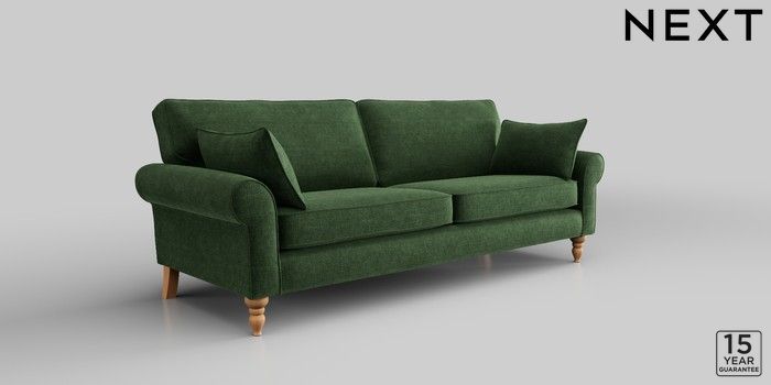 7.2.10 Mallory 3 Seater Sofa Luxe Chenille Dark Green High Turned - Light | Made Click here to use our website with more accessibility support, for example screen readers