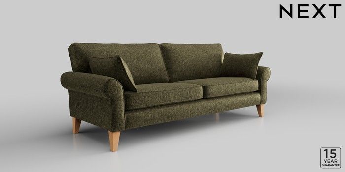 7.2.10 Mallory 3 Seater Sofa Plush Chenille Moss Green High Tapered - Light | Made Click here to use our website with more accessibility support, for example screen readers