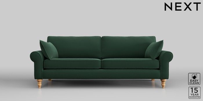 7.2.10 Mallory 3 Seater Sofa Plush Velvet Easy Clean Bottle Green High Turned - Light | Made Click here to use our website with more accessibility support, for example screen readers